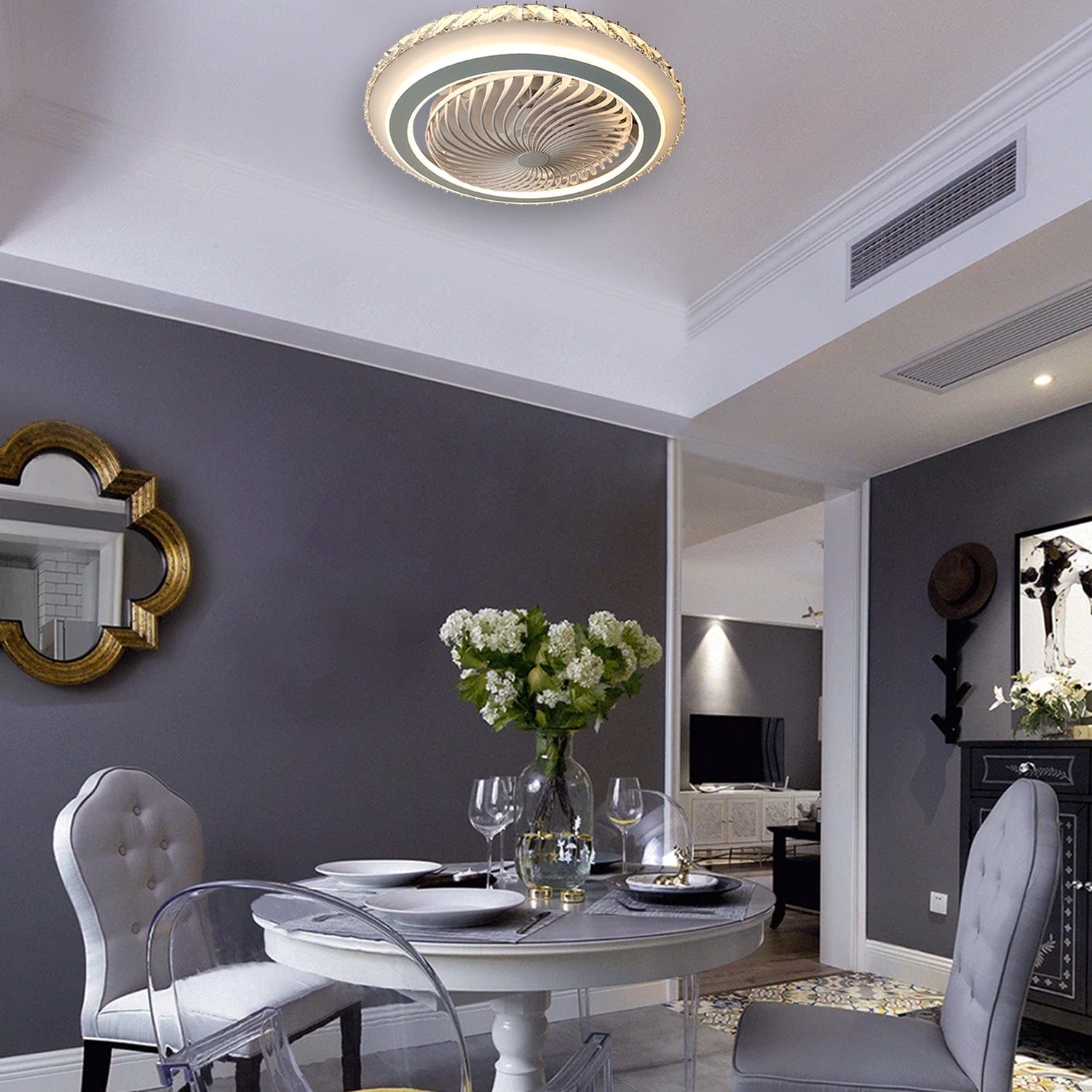 High-Quality Materials: Crafted with ABS Blades and adorned with sparkling K9 Crystals, this chandelier fan exudes luxury and durability, ensuring long-lasting performance and aesthetic appeal.